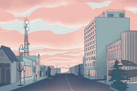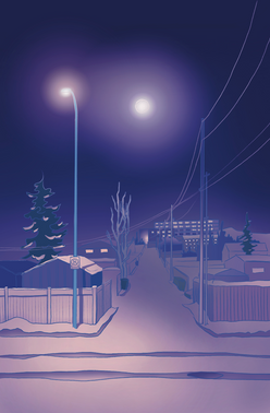 Artist Statement "Usually when I try to convince someone from “down south” that Yellowknife is great, I talk about the wilderness, the work-life balance, and the art and music scene. I struggle to describe the city itself. Perhaps the urbanness of a place so remote is inconceivable to people who haven’t seen it. Maybe the appeal of a northern town is in its proximity to wilderness, so that its streets, alleys, and high rises would be an afterthought, if thought of at all. Because I can’t describe what makes me call this city beautiful, I’m drawn to draw it. In this series I hope to showcase the loveliness of this city, as a nod to those who know what I know, as a bid to those who don’t, and as an offering to Yellowknife itself."